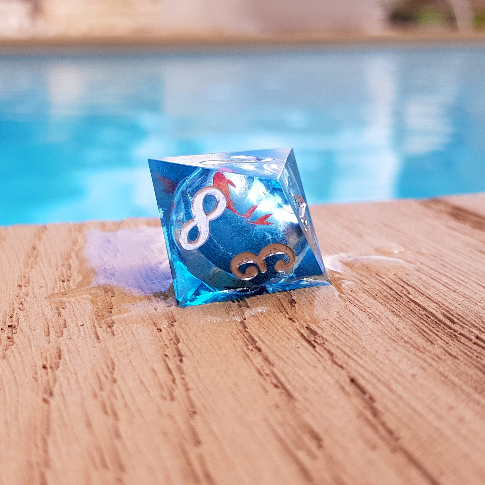 Under sunlight, the dice glow like enchanted jewels dredged from a celestial pond.