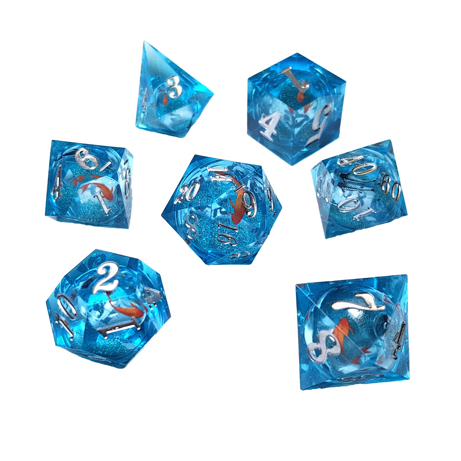 Stellar Blue Lake – Epico set di dadi Sharp liquidi