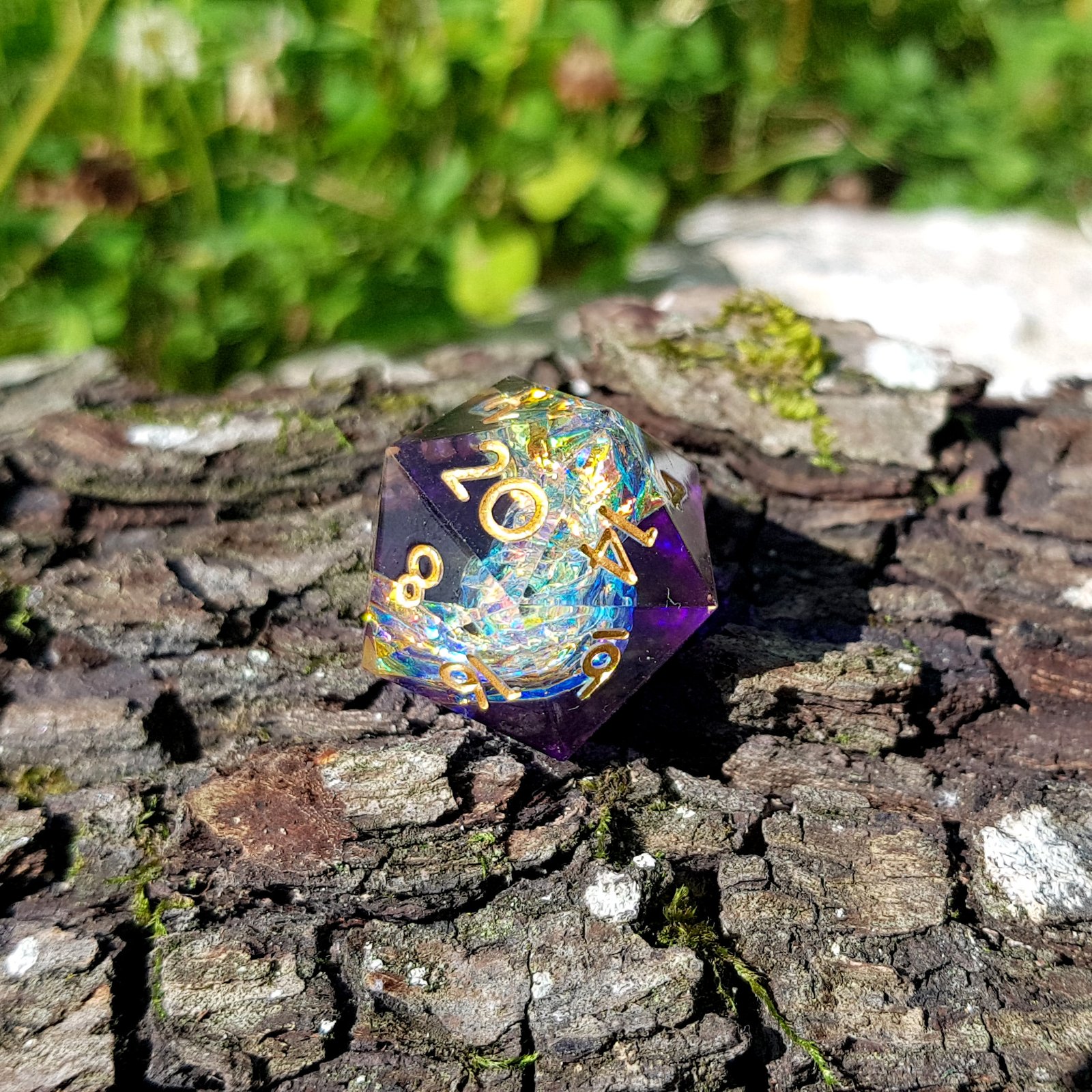 Celestine Amethyst Shards – Sharp Resin Dice Set