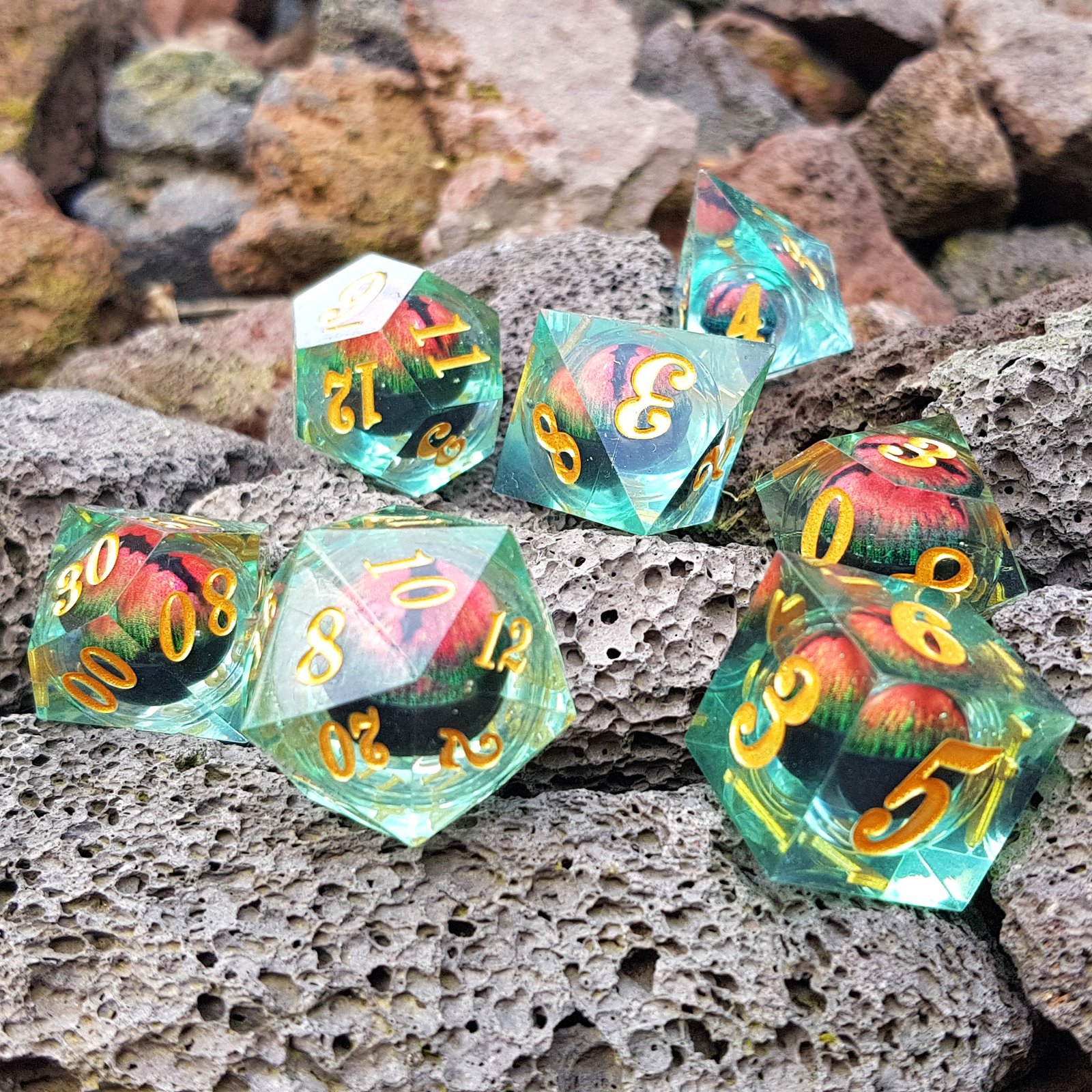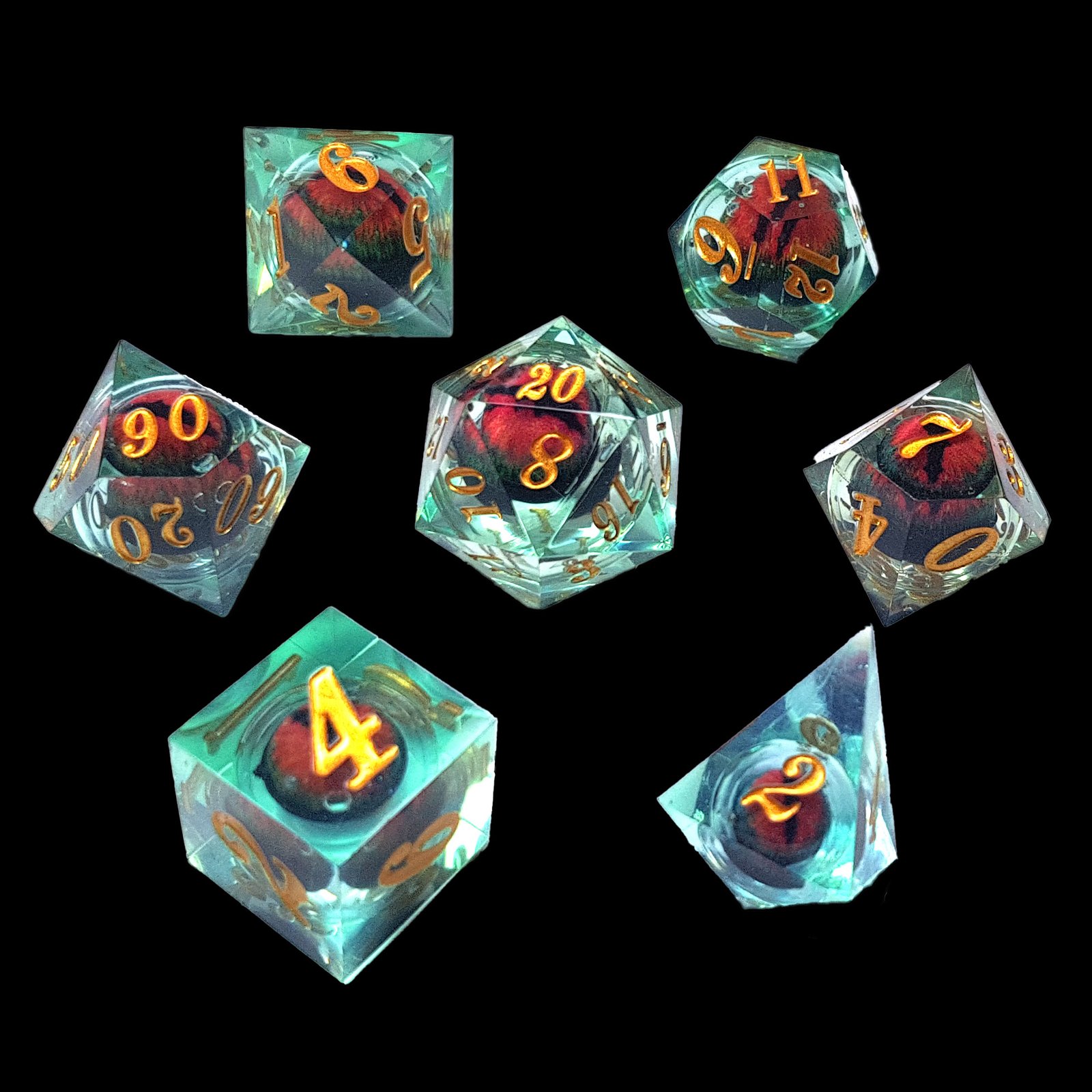 Dragon Blood-Eye of Rage – Sharp Resin Liquid Core Dice Set