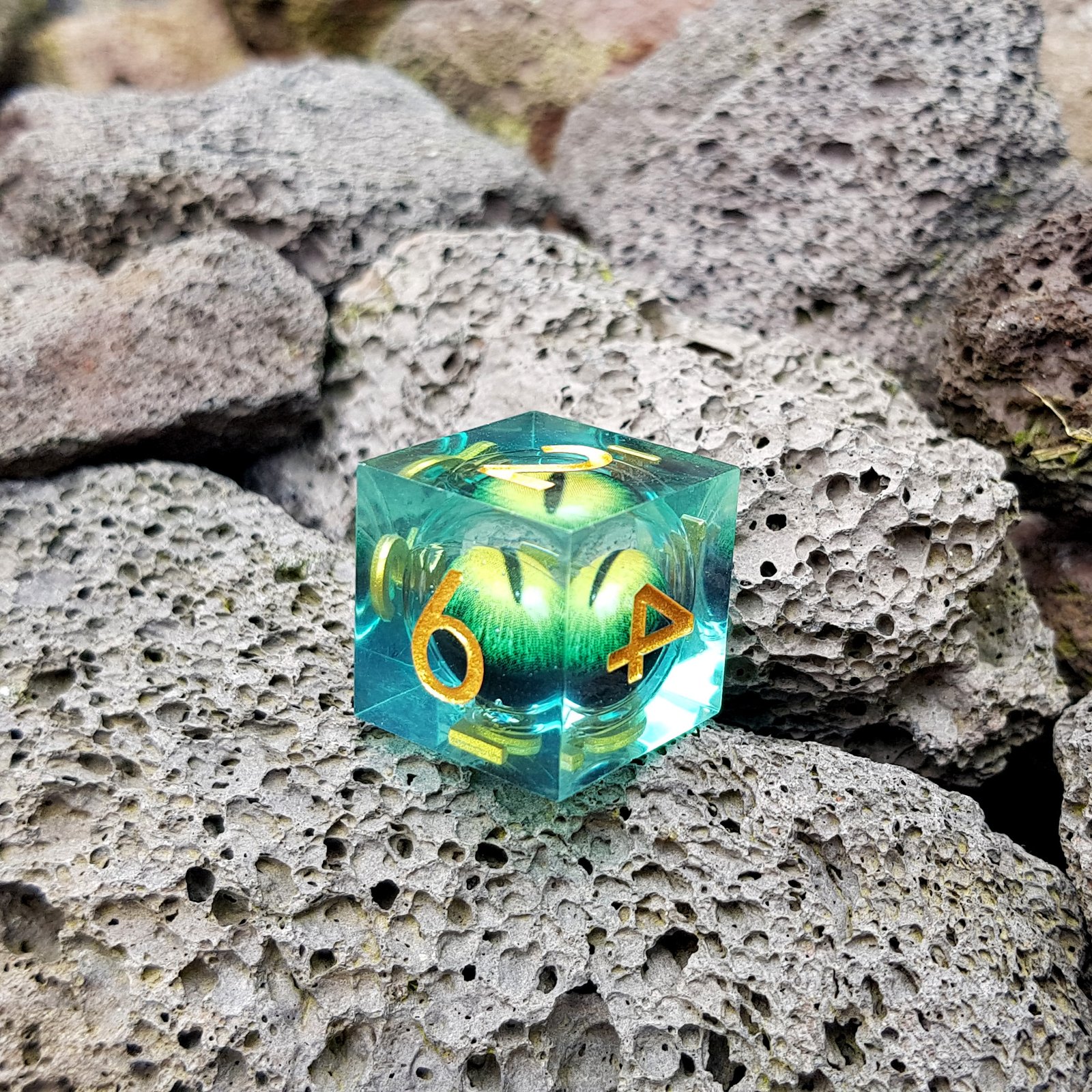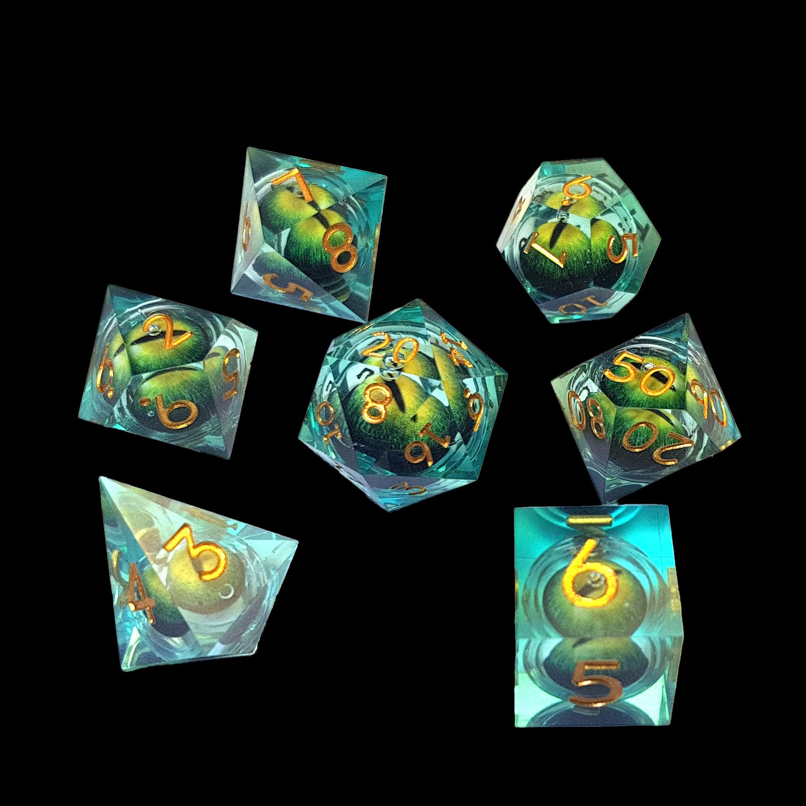 Dragon Green Eye of Vision – Sharp Resin Liquid Core Dice Set