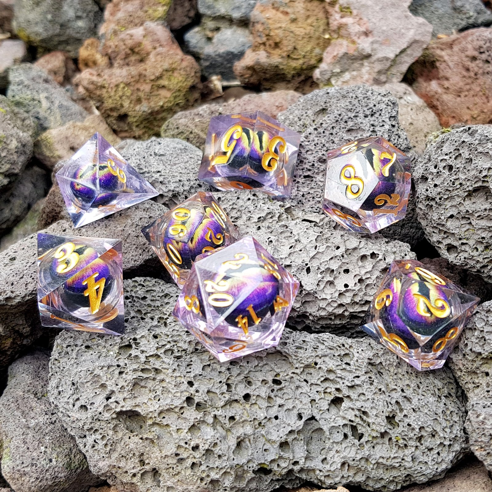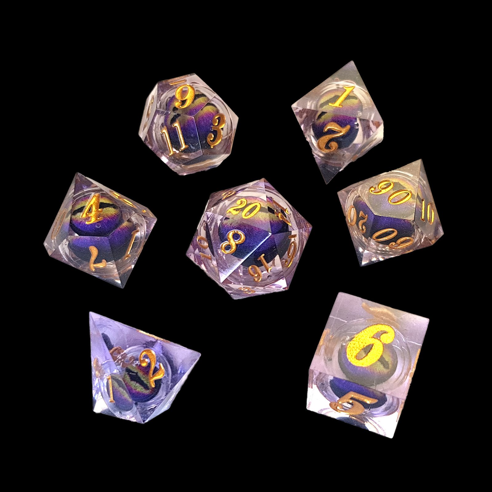 Dragon Purple Eye of Magic – Sharp Resin Liquid Core Dice Set